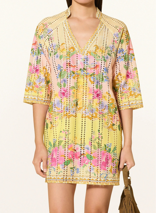 Túnica corta Florescence Petal Glow de Maryan Mehlhorn. Diseño elegante con delicado estampado floral que...