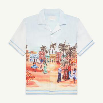 Immerse yourself in the vibrant spirit of Santiago with our exclusive print shirt featuring hand-painted carnival designs. Crafted from premium Tencel™ Lyocell, this garment offers a silky-soft feel with exceptional breathability for summer comfort. The popular Valbonne camp collar silhouette is enhanced with high-quality trochus shell buttons. Made with 100% sustainable Tencel™ derived from eucalyptus, this biodegradable fabric is not only softer and stronger than cotton, but also ecologically responsible, produced with renewable energy and recoverable chemicals.