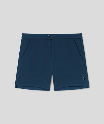These tennis shorts, iconic in the '80s and worn by legends like Björn Borg, Jimmy Connors, and John McEnroe, feature a slightly tapered cut with side vents for greater freedom of movement. Made from breathable polyester with a touch of elastane, they offer comfort and flexibility during play. They feature a RON DORFF-engraved button and two side pockets, with no back pockets, as well as two discreet black lacquered eyelets on the sides for a distinctive and functional detail.