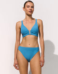 Bikini de la prestigiosa marca Maryan Mehlhorn que combina elegancia y comodidad. Compuesto por una braga clásica y un top triangular en un sofisticado tono celeste Nordic Blue. Diseño versátil que se adapta a cualquier ocasión, desde la playa hasta la piscina, ofreciendo un soporte óptimo y una silueta favorecedora. Confeccionado con materiales de calidad que garantizan durabilidad y confort durante todo el día.